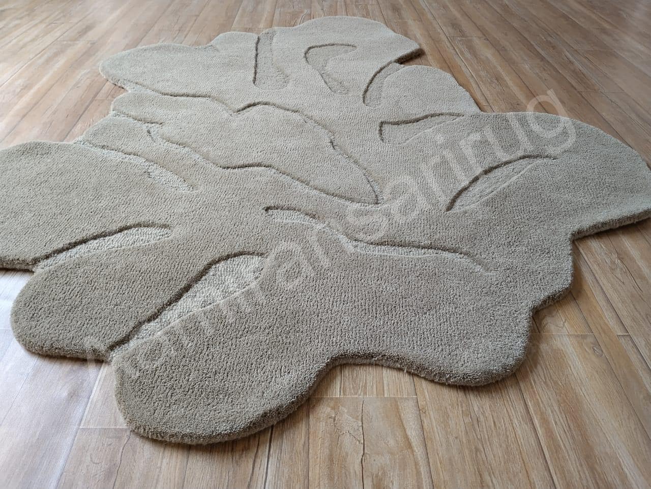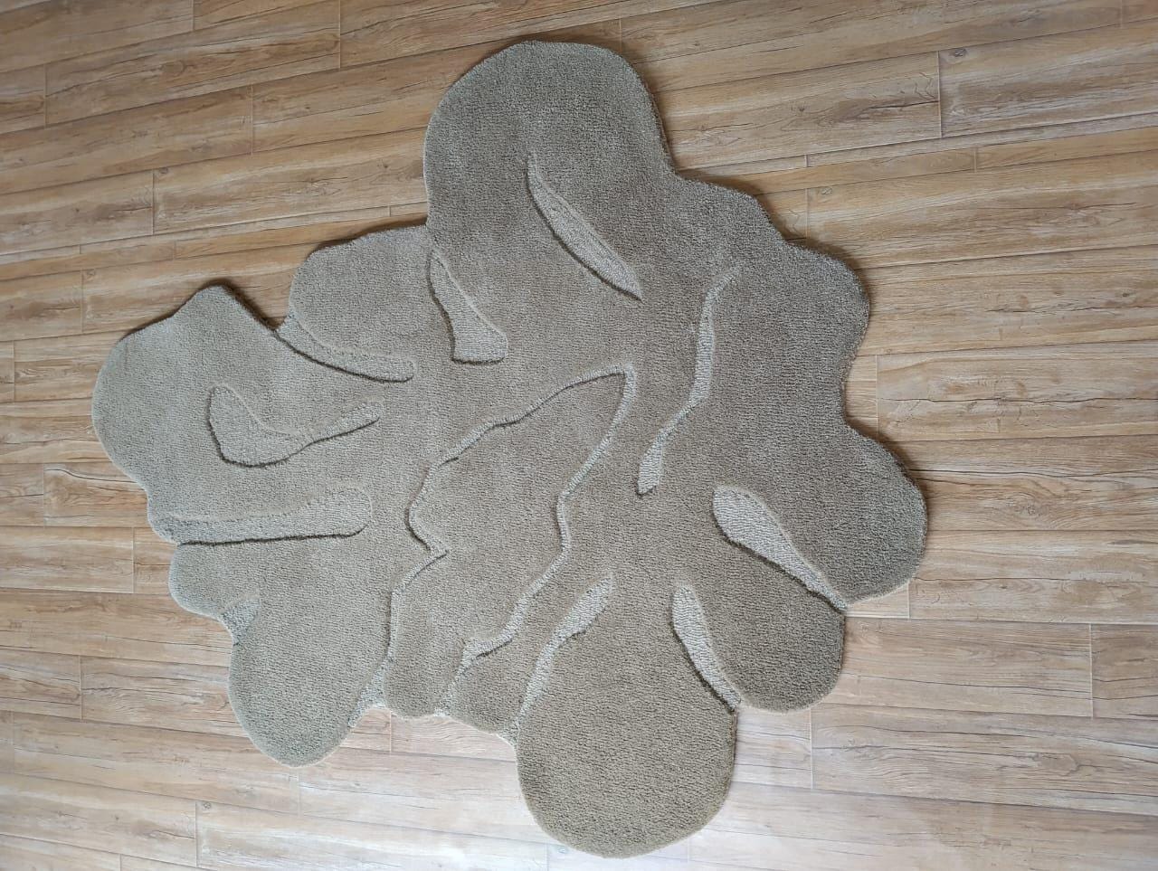 Hand-Tufted Wool Rug in a unique organic, irregular shape. This sculptural beige rug combines artistic design with the warmth and softness of premium wool, making it a perfect choice for contemporary, minimalist, and nature-inspired interiors.