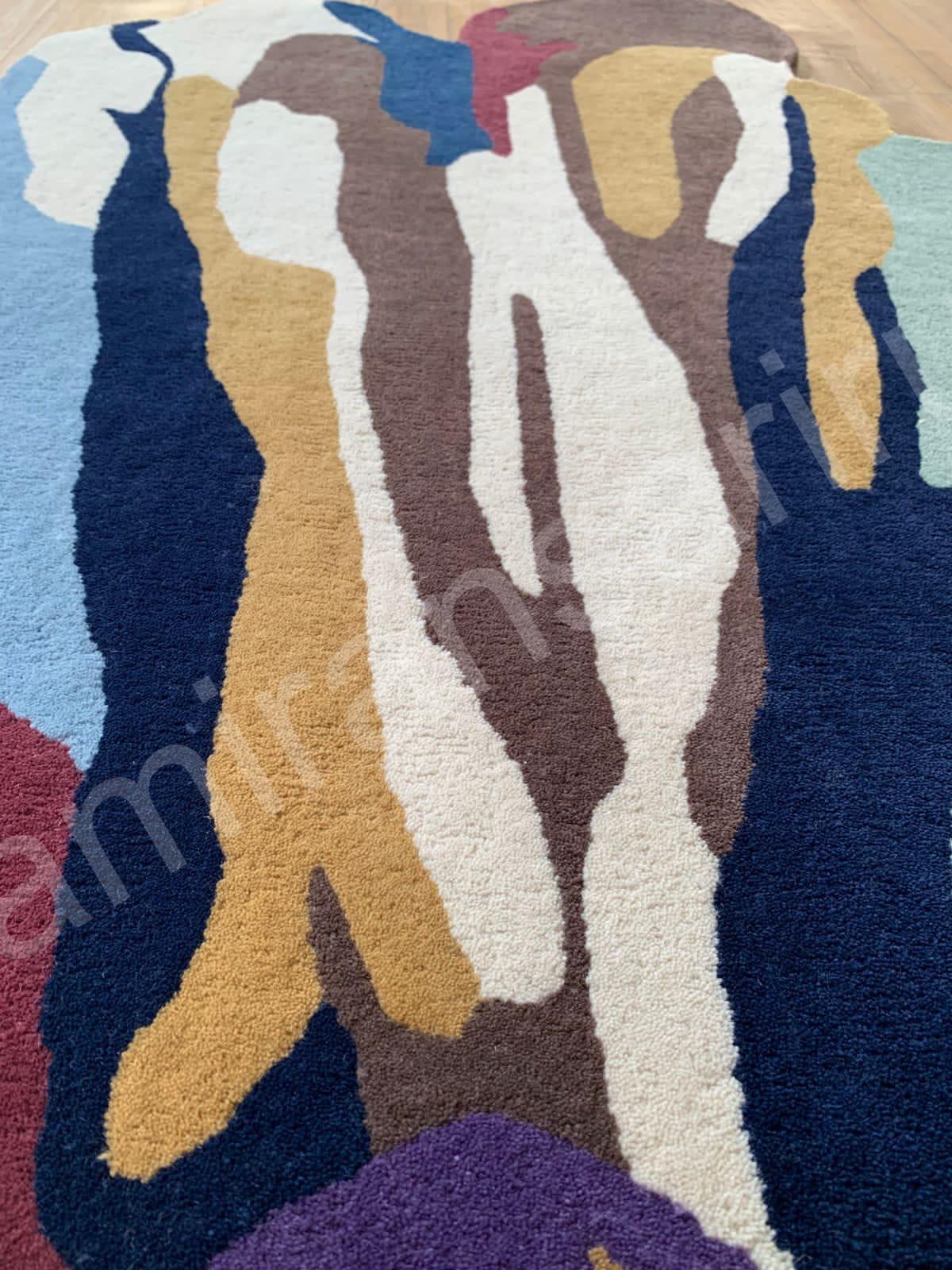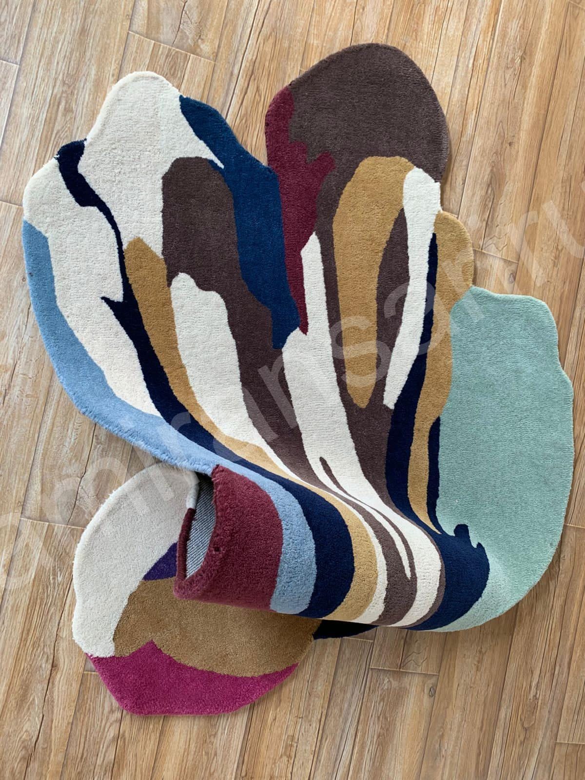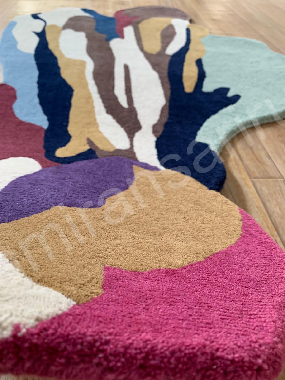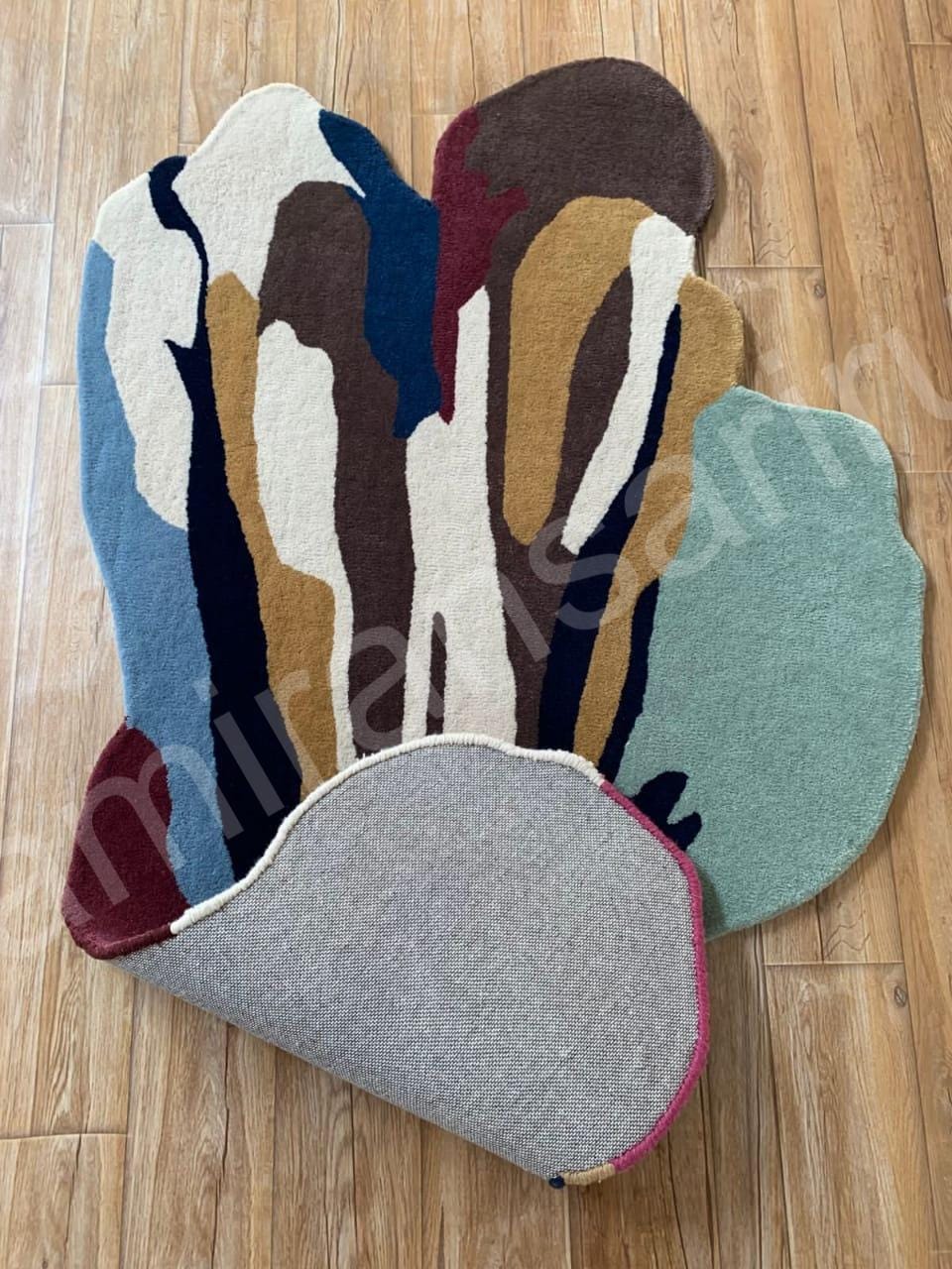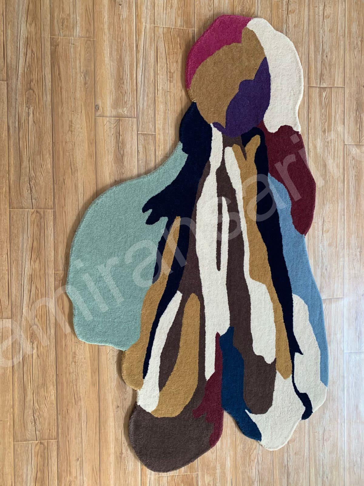 Its irregular freeform shape makes it an excellent choice for breaking away from traditional rectangular rugs, adding creativity and character to living rooms, bedrooms, studios, or gallery-style spaces. The design pairs beautifully with modern, bohemian, and eclectic interiors, working as both a grounding element and a statement art piece.