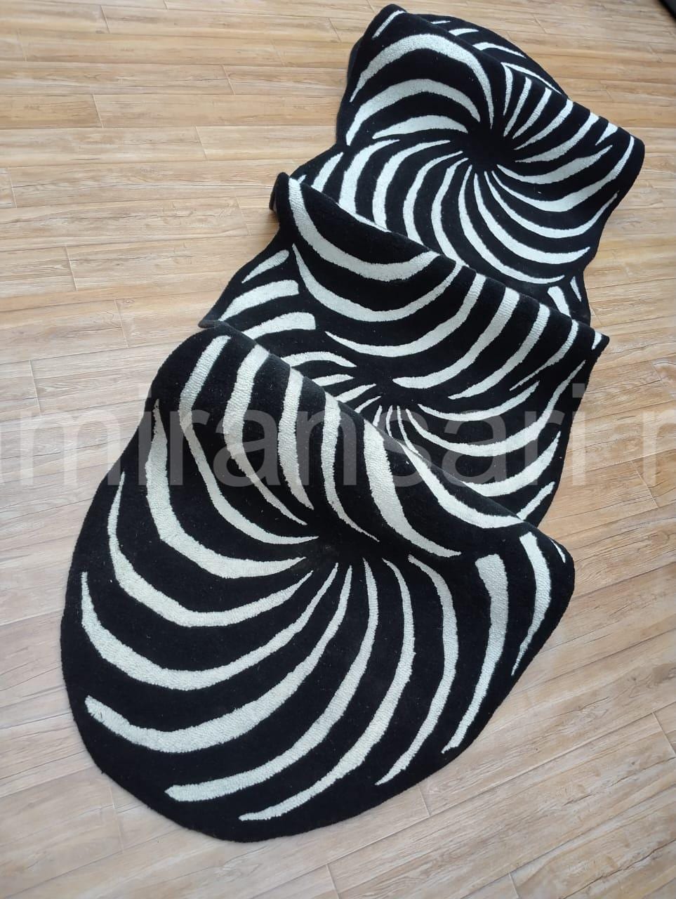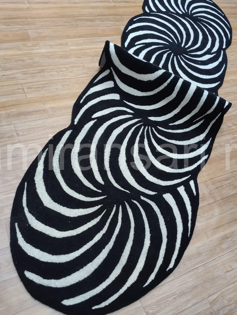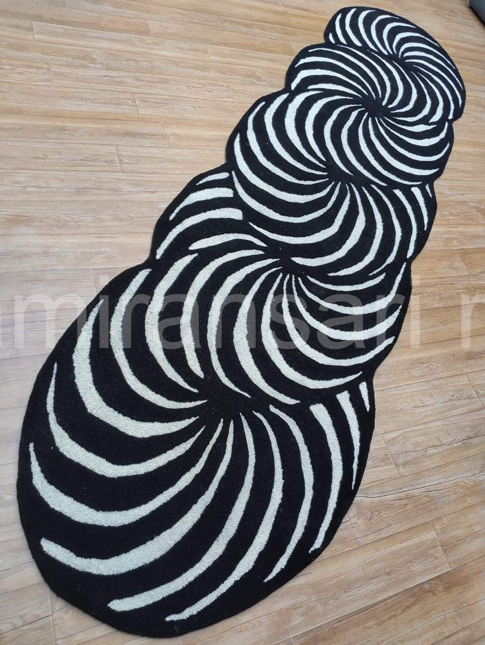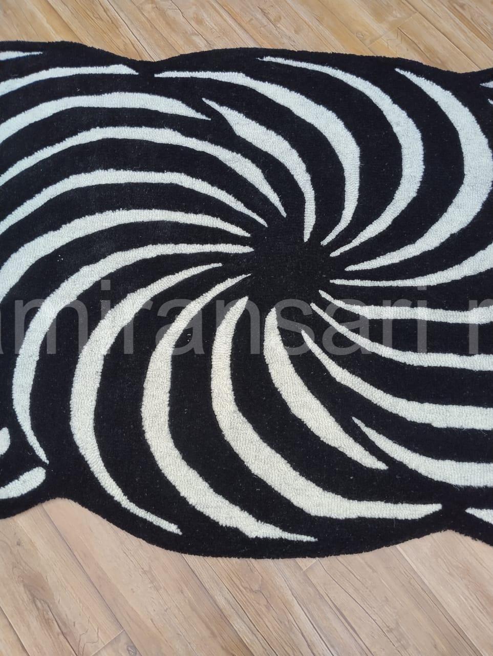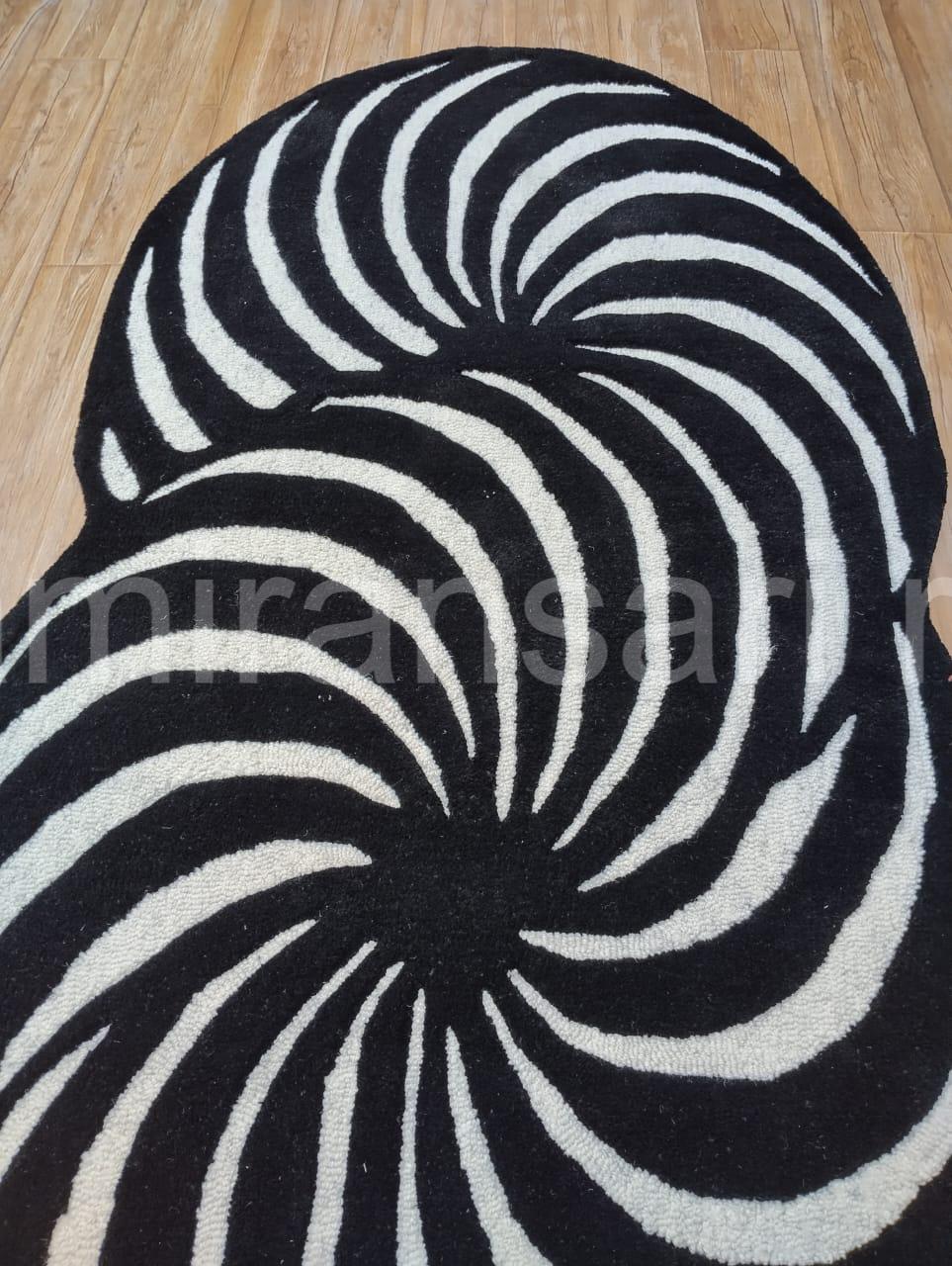 Black & White Optical Illusion Rug - Hand-Tufted Wool Abstract Swirl