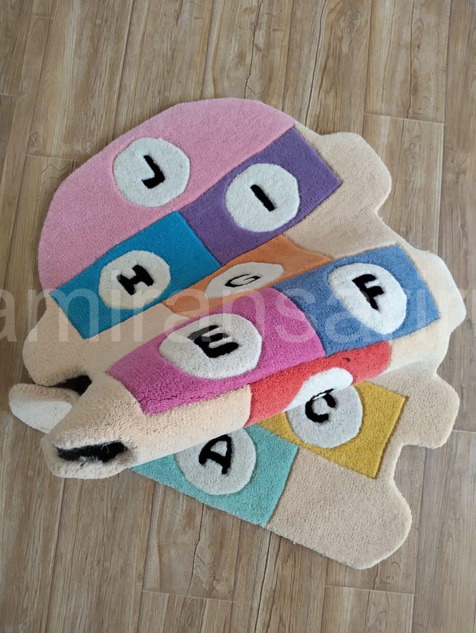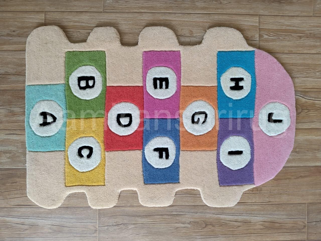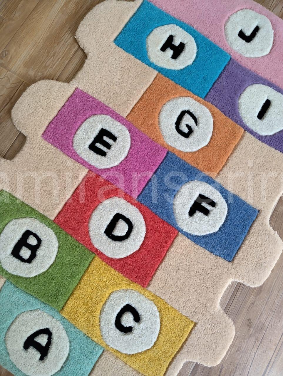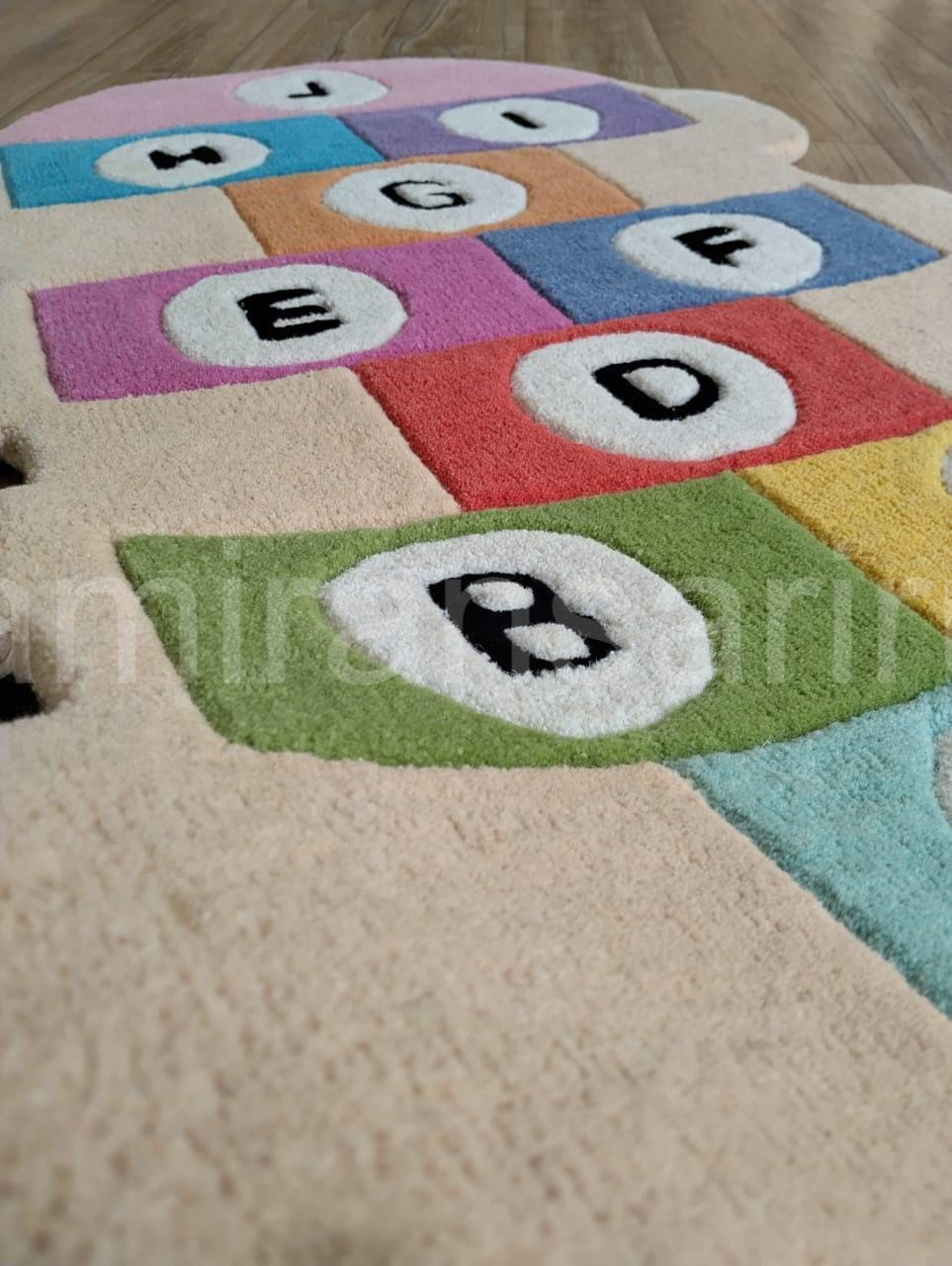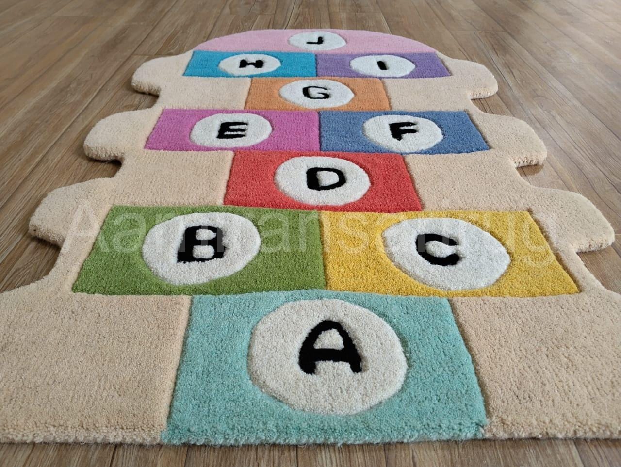 Hand-Tufted Wool Kids Rug, Alphabet Hopscotch Design, Nursery Decor