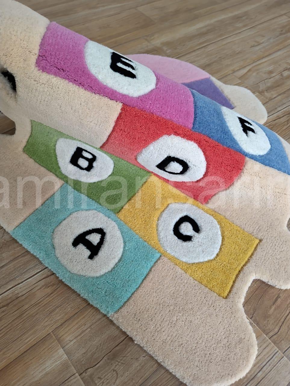 "Whimsical Wool Rug with Educational Alphabet Design"