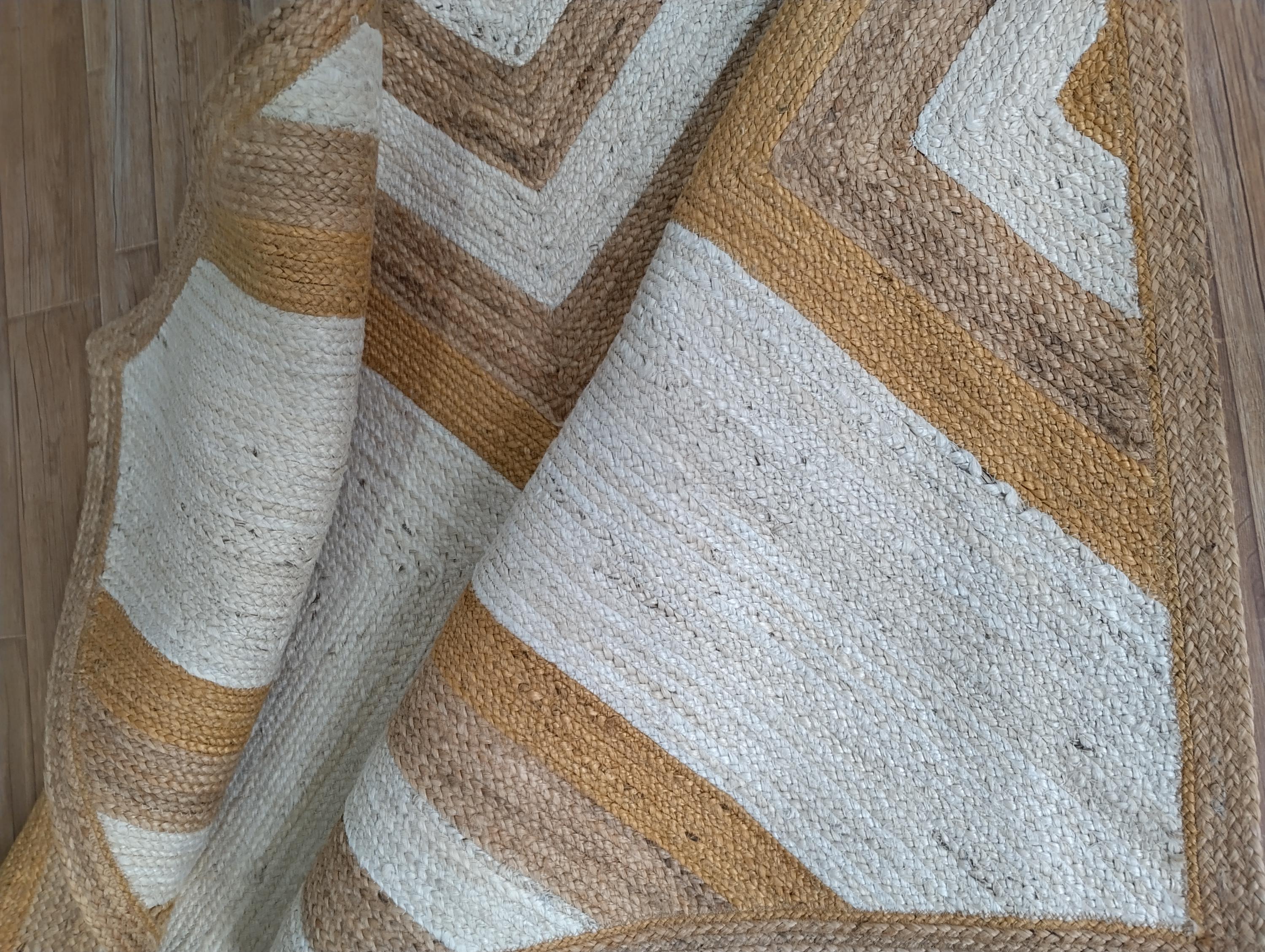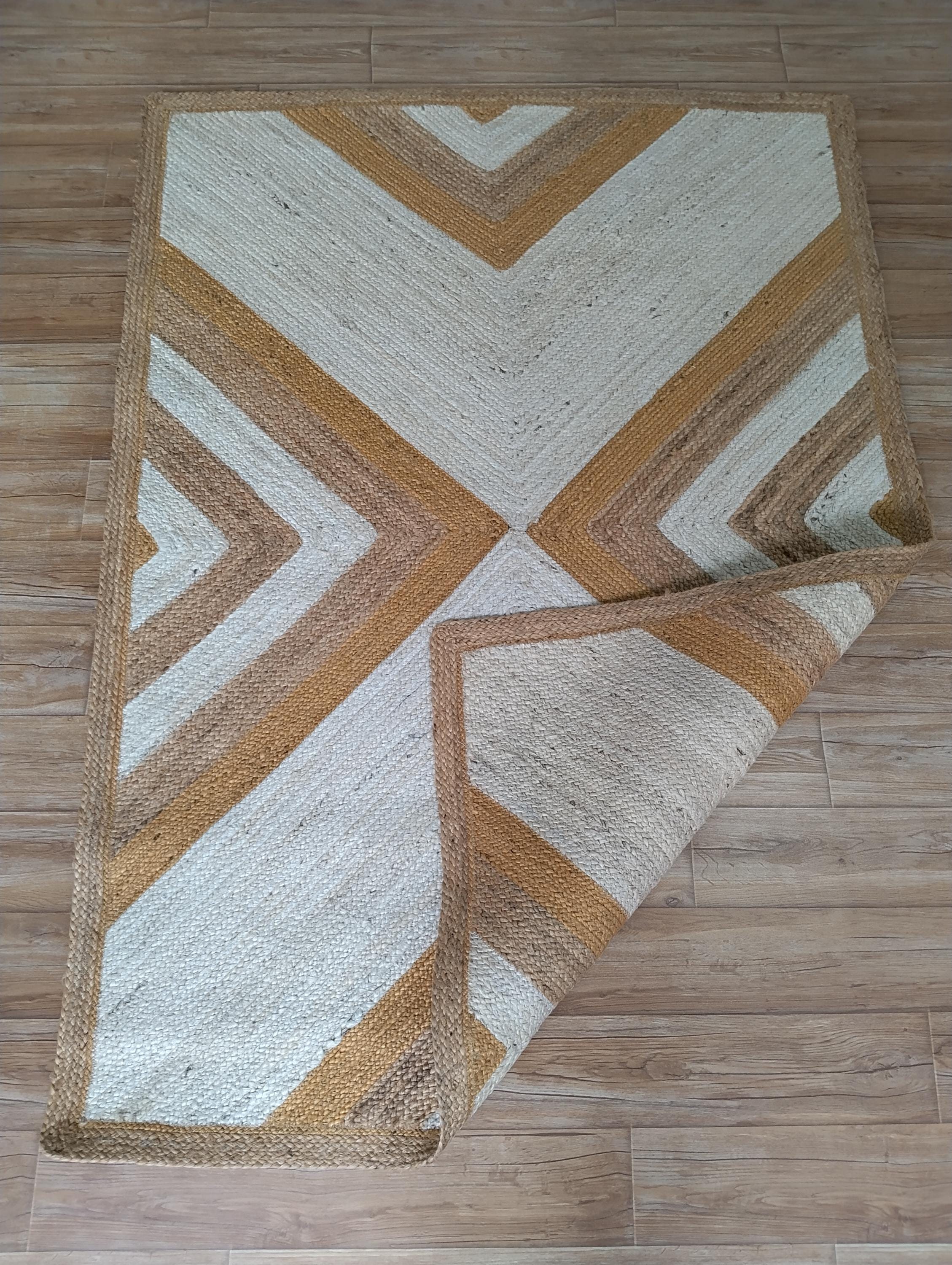 "Boho Chic: Handcrafted Jute Chevron Rug for a Rustic Home Vibe"