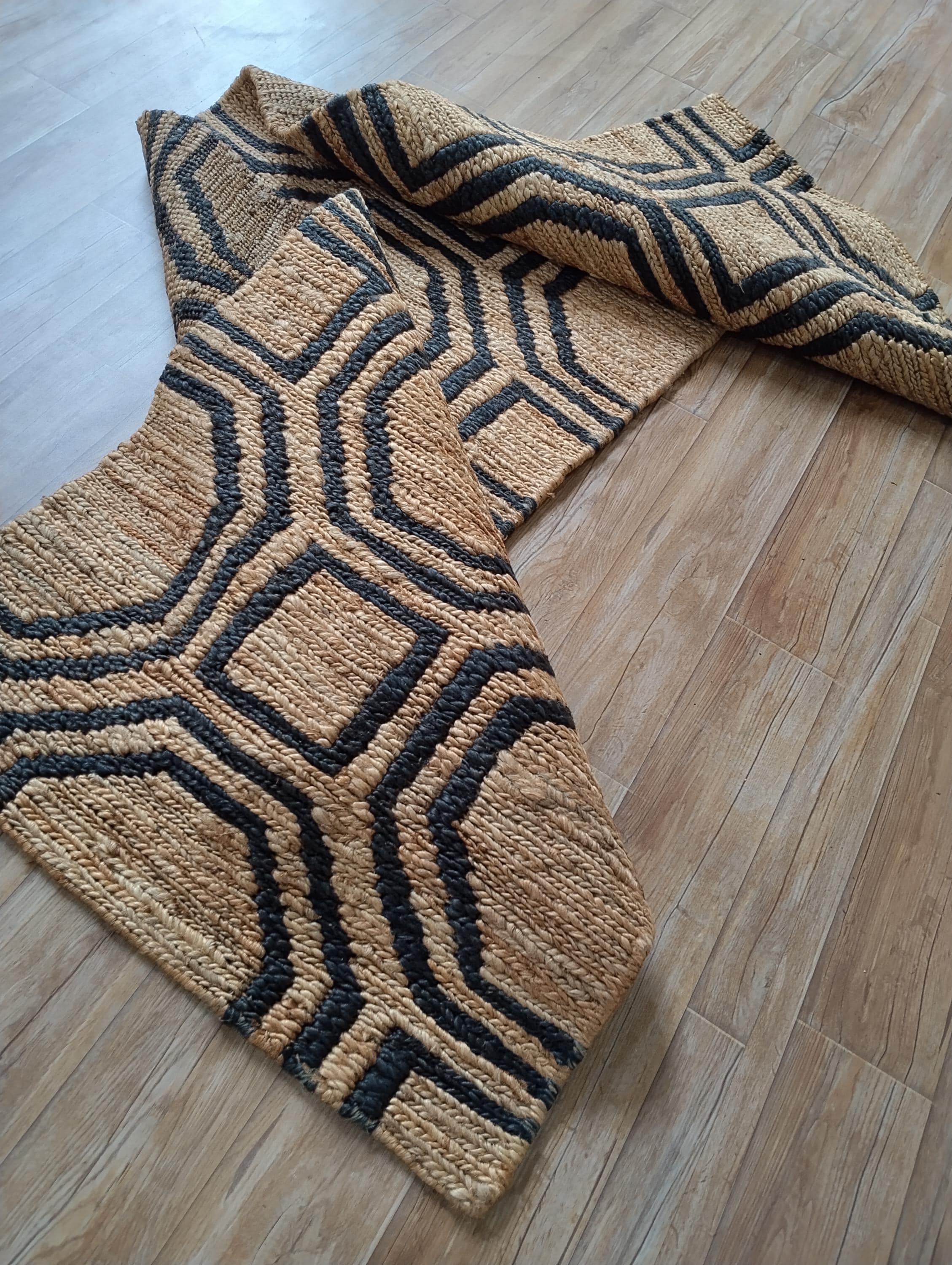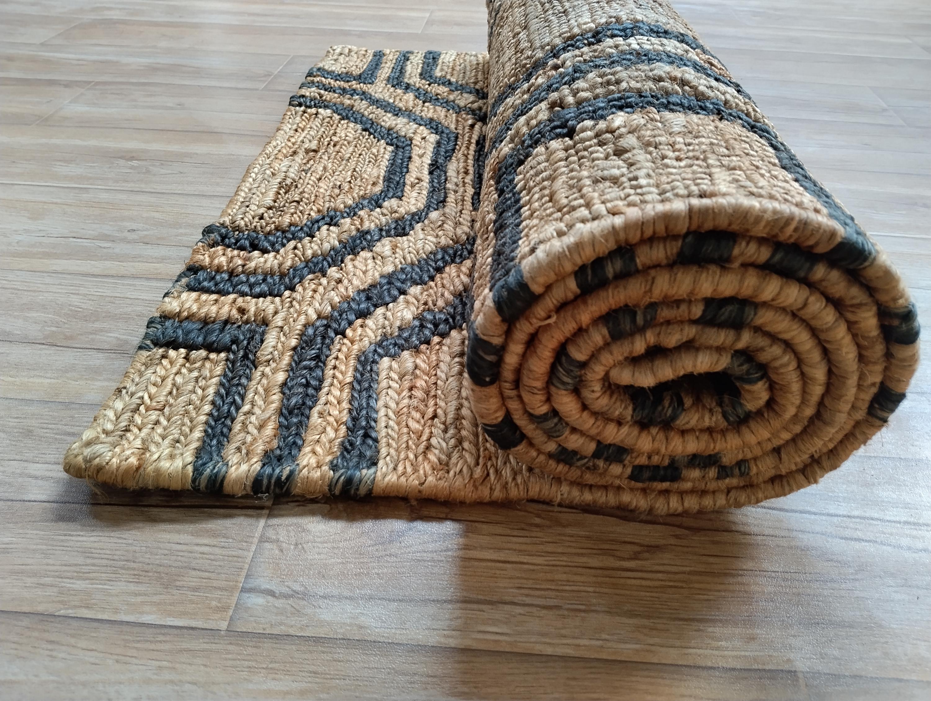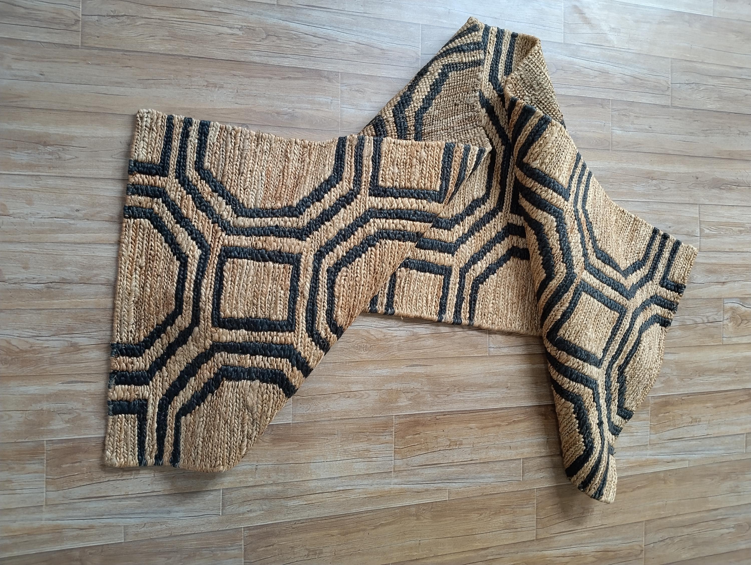 Elevate your home decor with our Sumak Jute Runner Rug, featuring a stunning black geometric pattern that adds a modern touch to any space. Crafted from eco-friendly materials, this rug is not only stylish but also sustainable, making it a perfect choice for the environmentally conscious. Versatile enough for entryways, hallways, or kitchens, this runner will effortlessly enhance your interior with its unique design and natural charm. Transform your home with this eco-friendly masterpiece today!