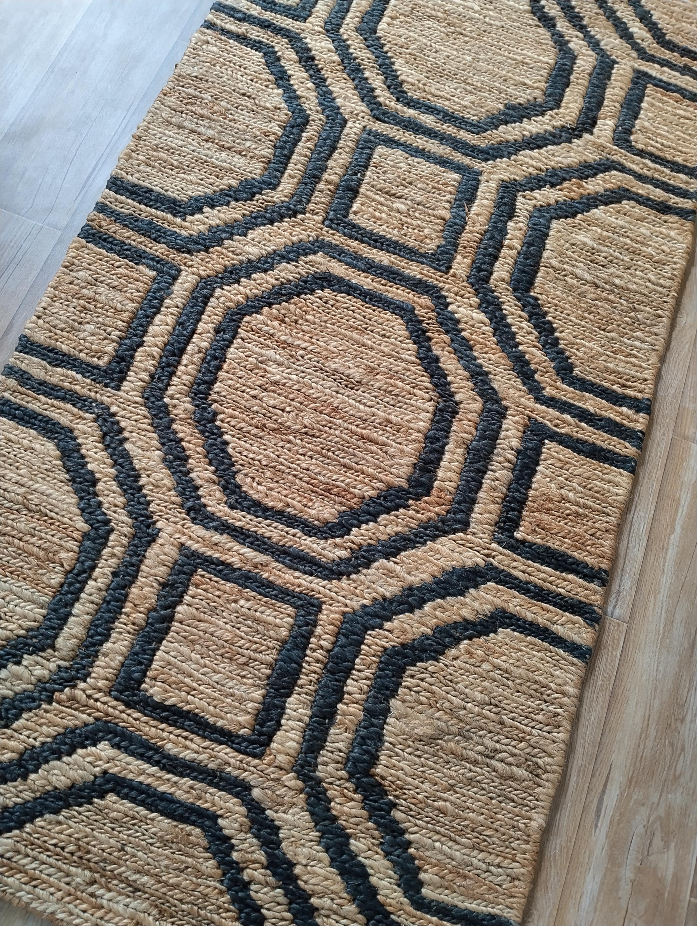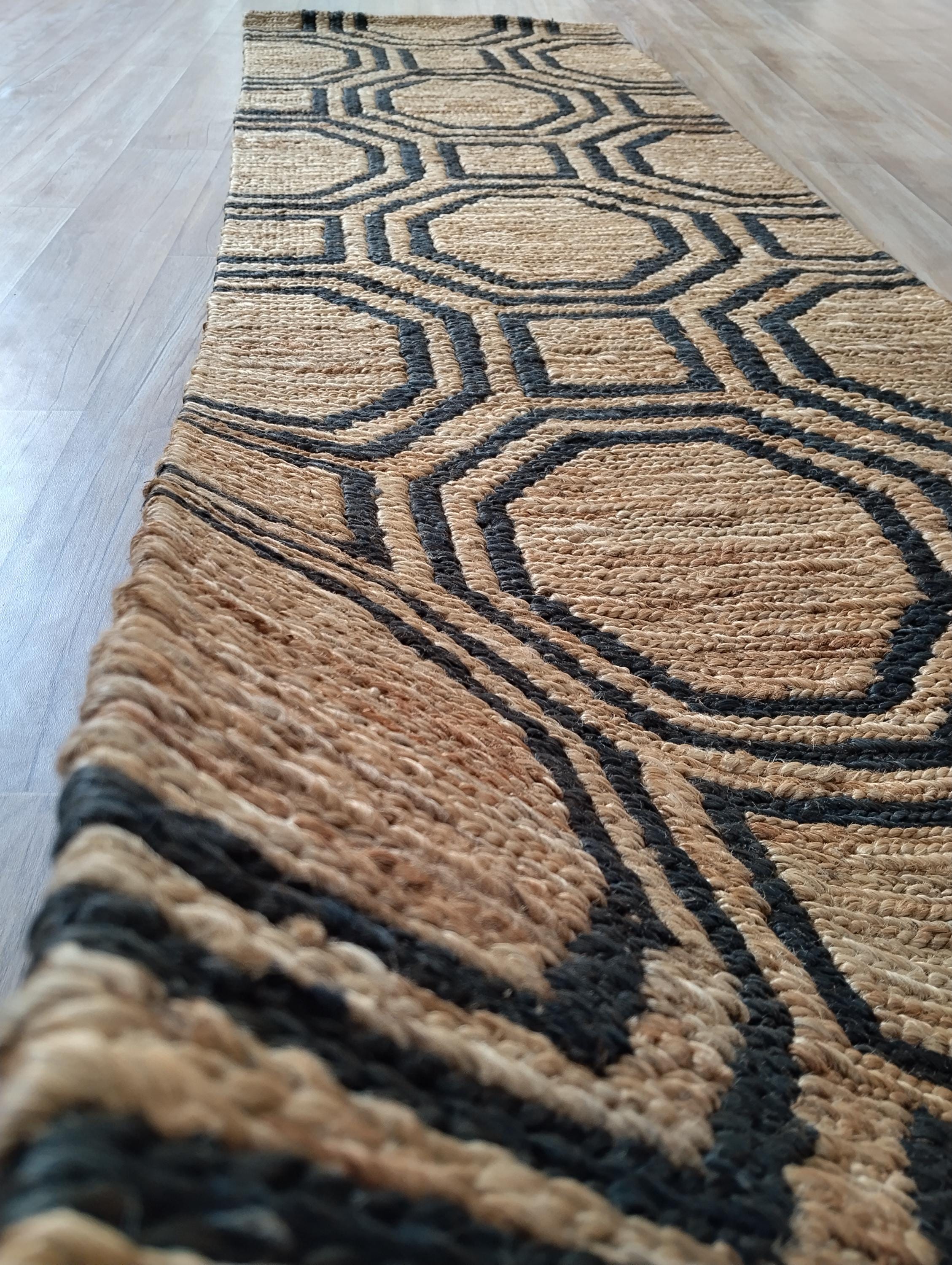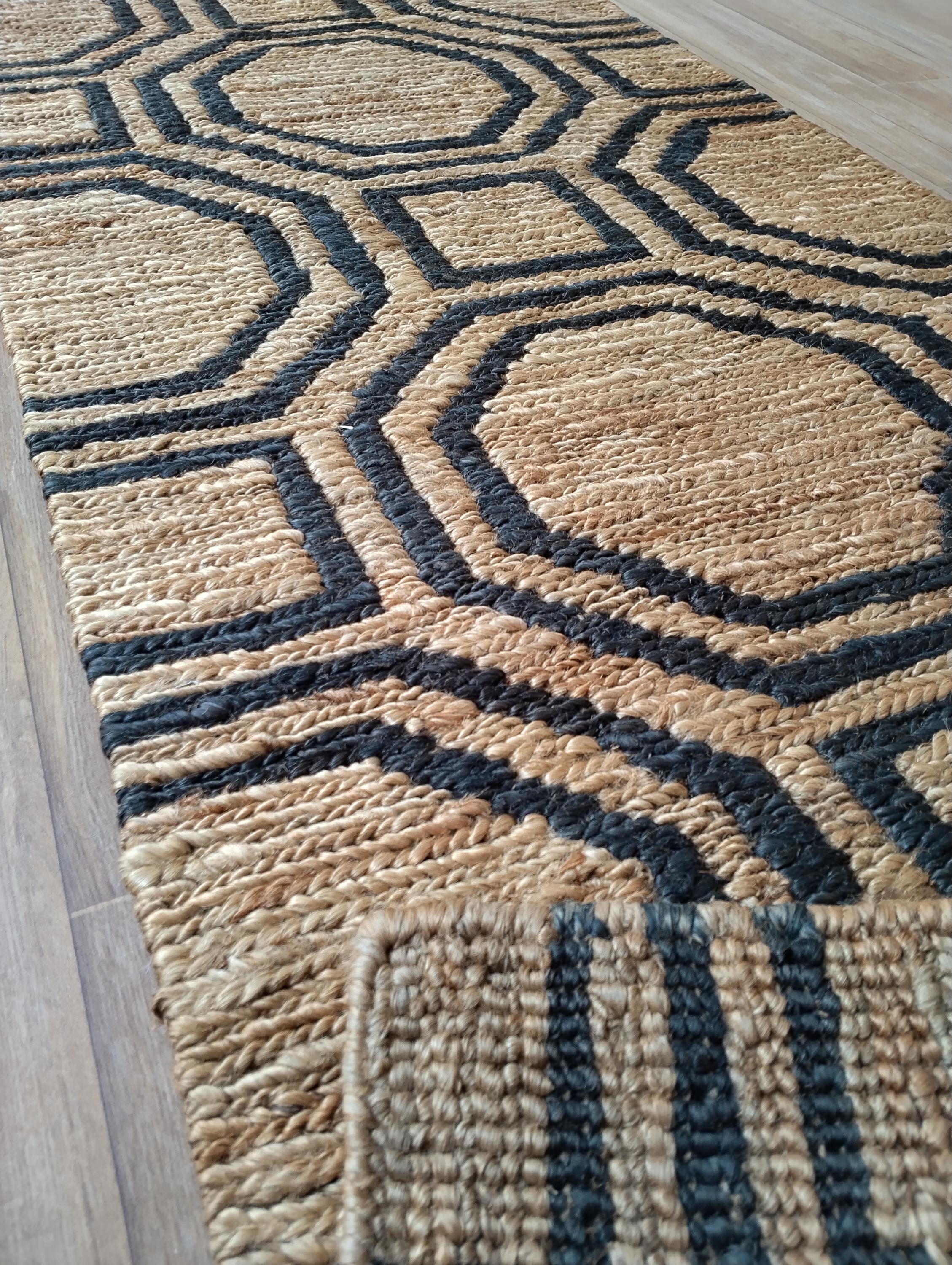 Elevate your home decor with our Sumak Jute Runner Rug, featuring a stunning black geometric pattern that adds a modern touch to any space. Crafted from eco-friendly materials, this rug is not only stylish but also sustainable, making it a perfect choice for the environmentally conscious. Versatile enough for entryways, hallways, or kitchens, this runner will effortlessly enhance your interior with its unique design and natural charm. Transform your home with this eco-friendly masterpiece today!