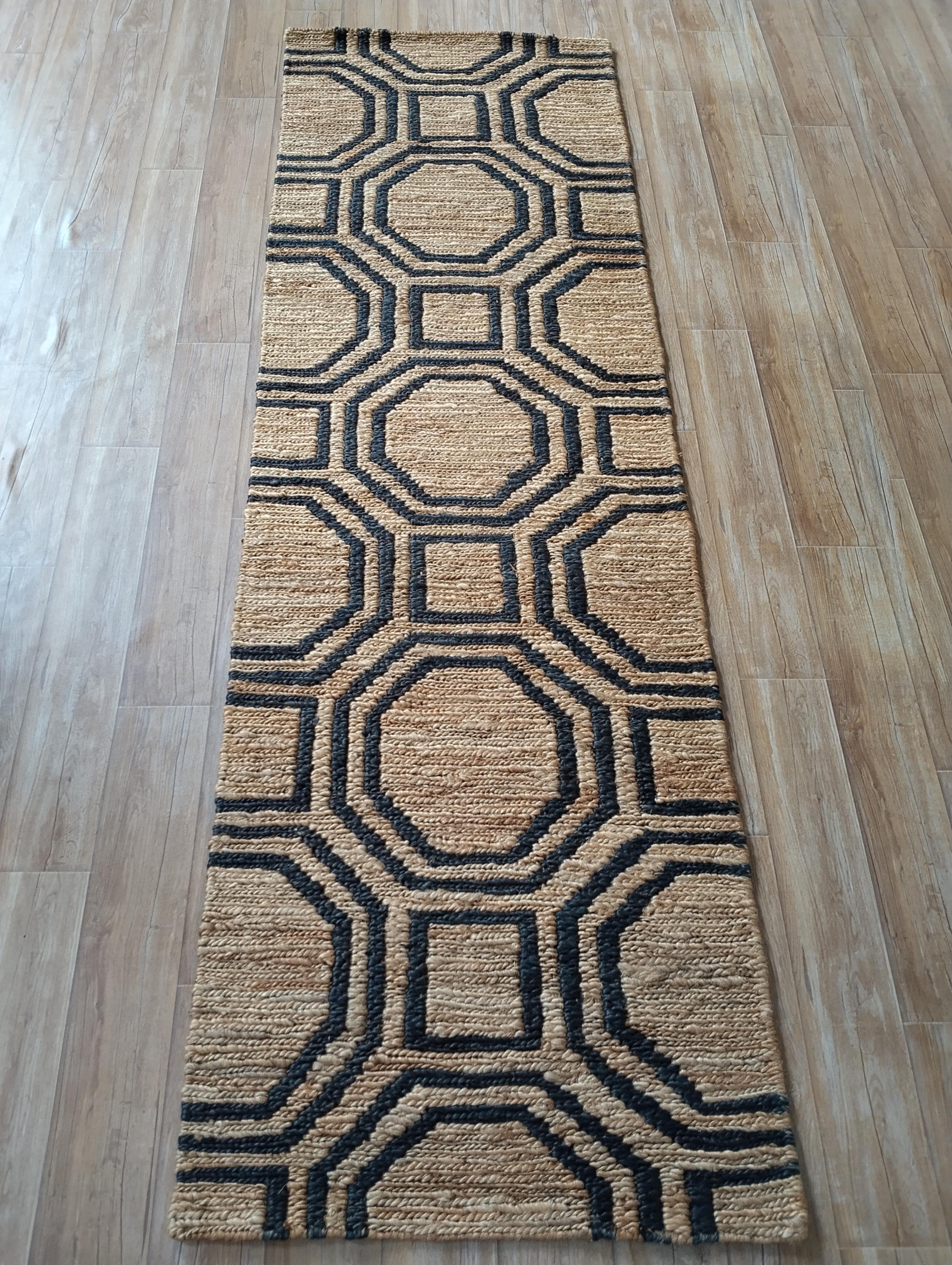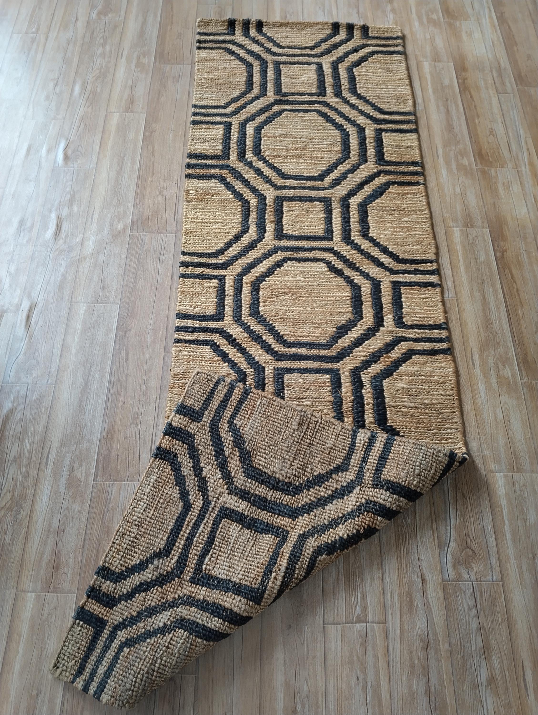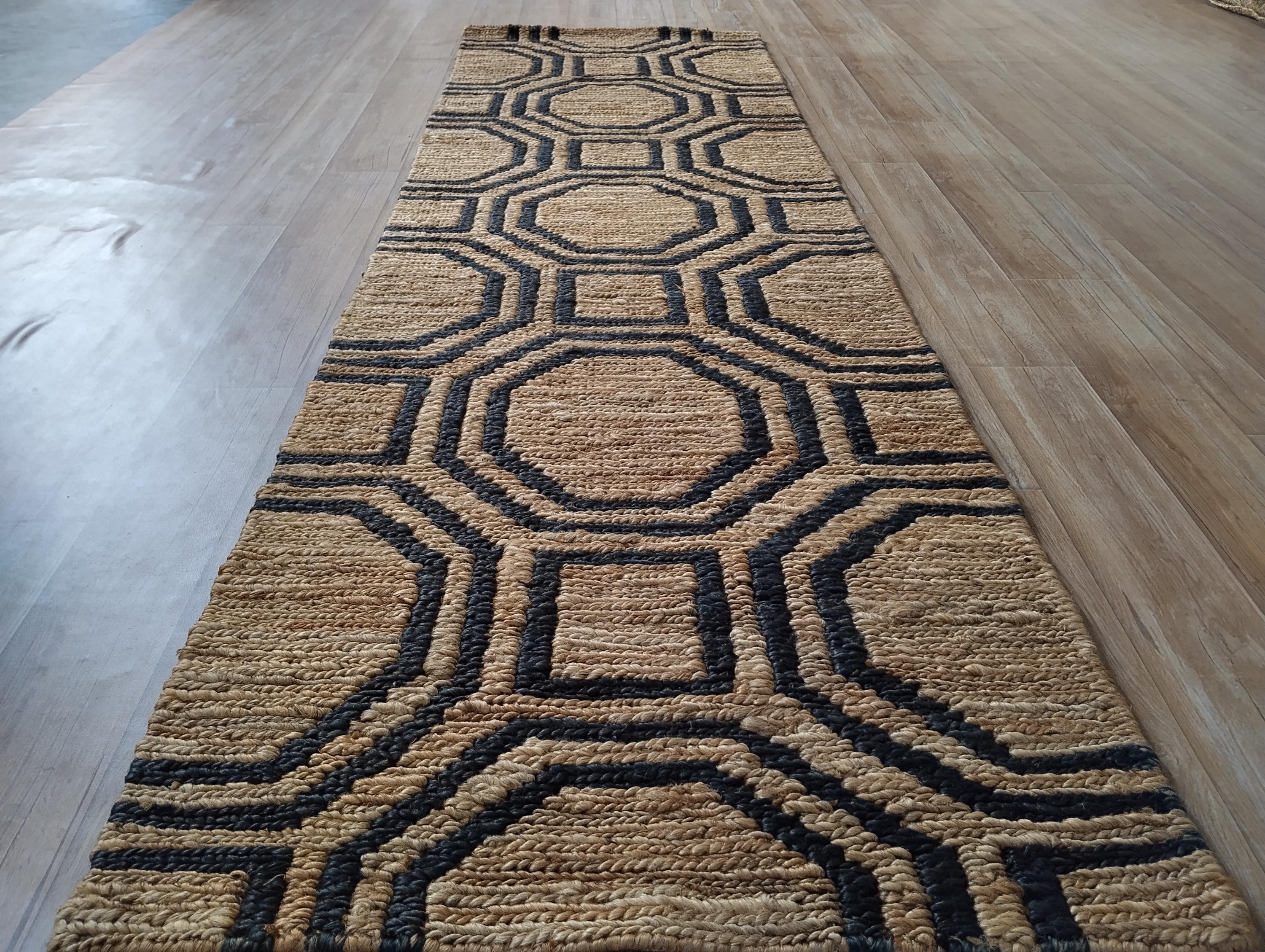 Stylish Eco-Friendly Sumak Jute Runner Rug with Black Geometric Design