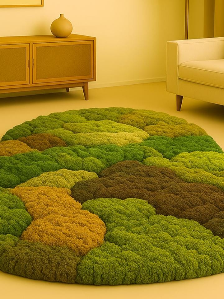 Perfect for nature lovers, eco-friendly decorators, and those who appreciate artistic home design, this green moss rug makes a thoughtful housewarming gift or a personal treat to elevate your own space.
