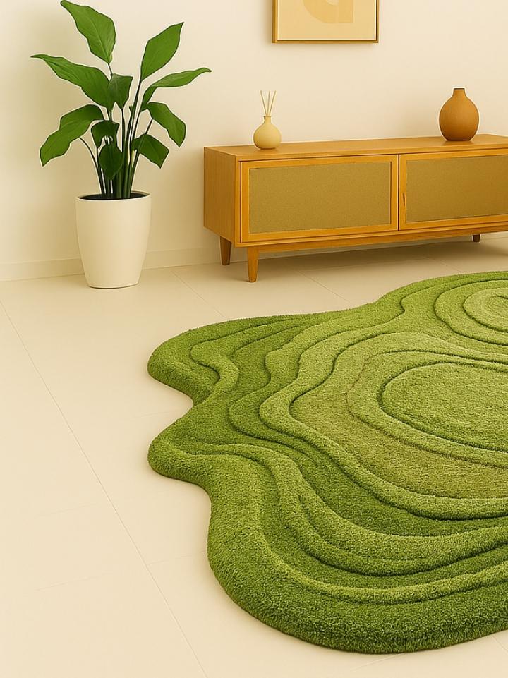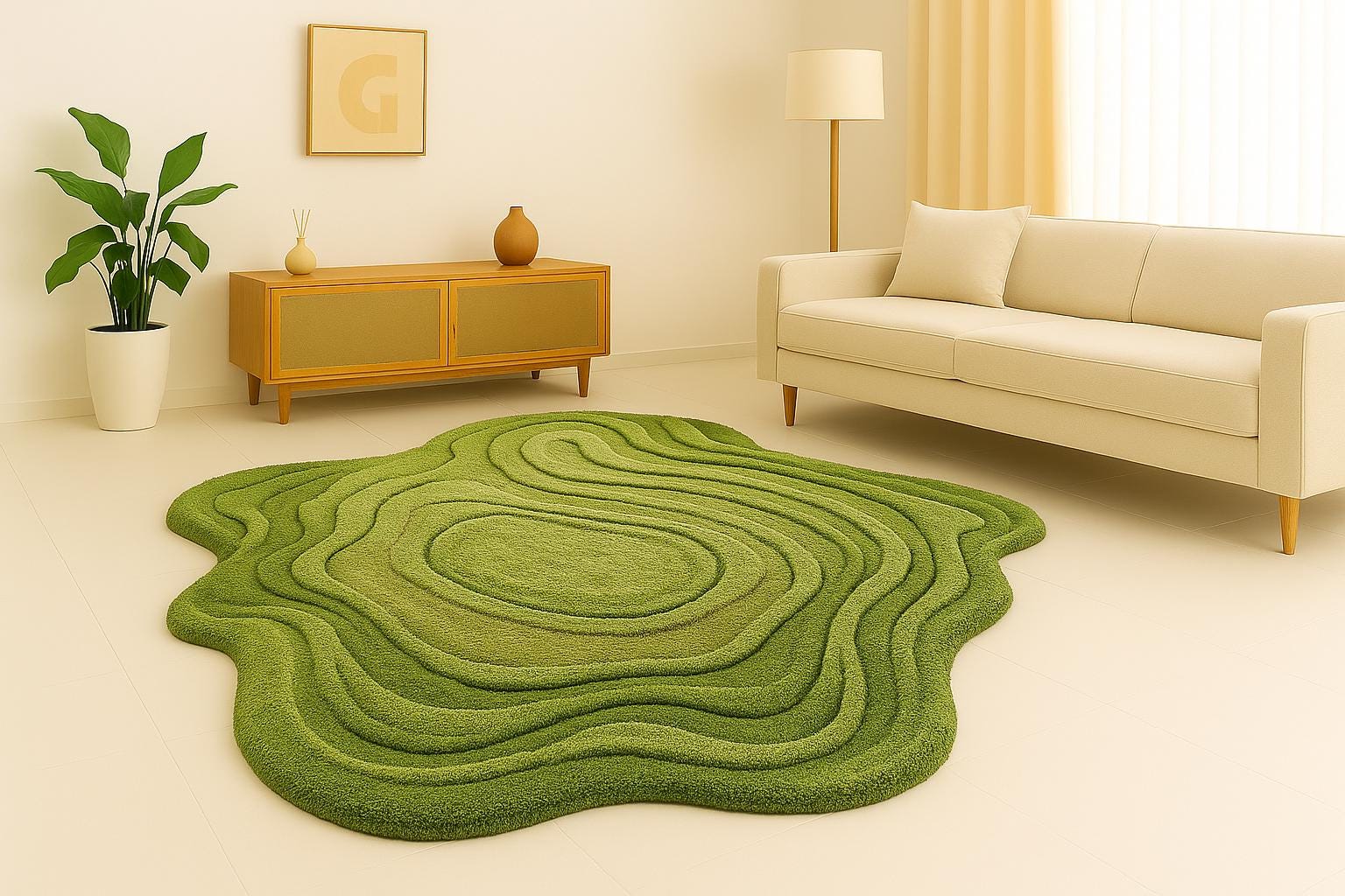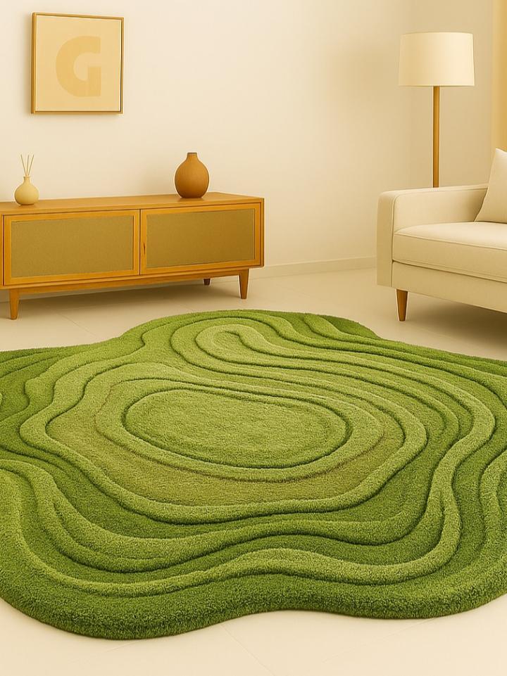 Bring a touch of modern artistry into your home with this unique 3D green layered area rug, designed to resemble a lush landscape with soft contours. Handmade with care, this topographic-inspired carpet adds depth, texture, and personality to any living space. Its organic, free-flowing shape makes it a standout statement rug, perfect for contemporary interiors, minimalist homes, or anyone who appreciates nature-inspired design.