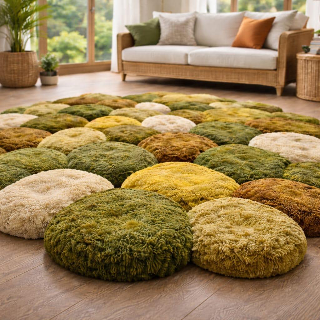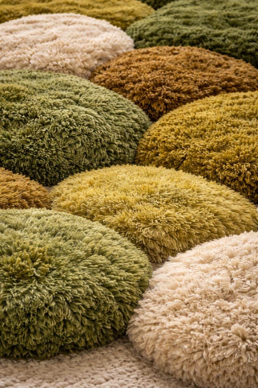 Is beautiful hand tufted moss-inspired rug se aap apne living space ko ek calm, cozy aur luxury look de sakte ho. Pebble-style round design aur natural green, beige, mustard tones is rug ko modern, boho aur Scandinavian interiors ke liye perfect banate hain.