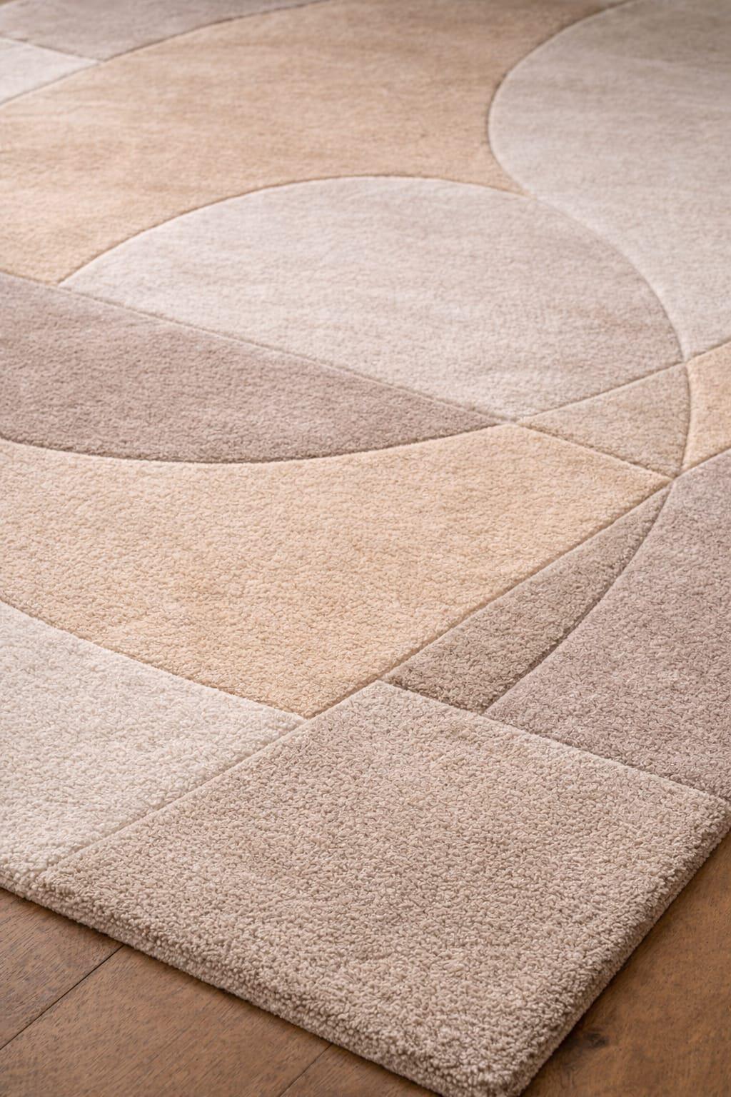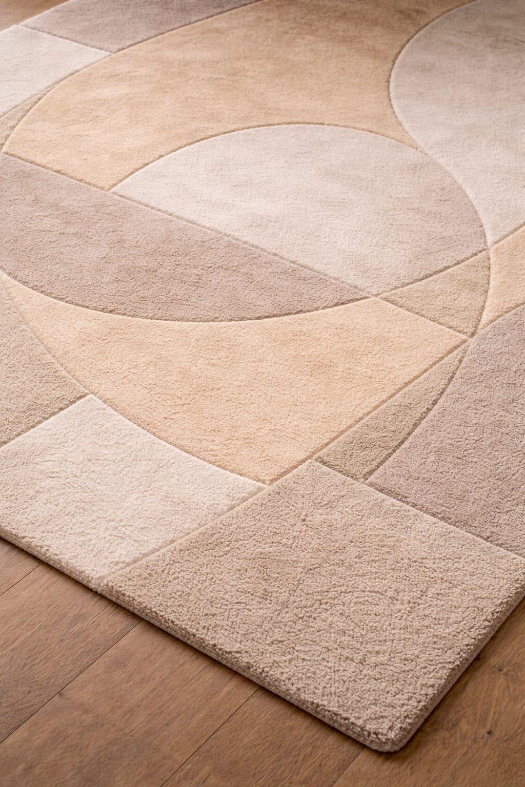 Modern Abstract Beige Area Rug, Minimal Neutral Wool Rug for Bedroom, Handmade Tufted Carpet, Contemporary Geometric Floor Rug