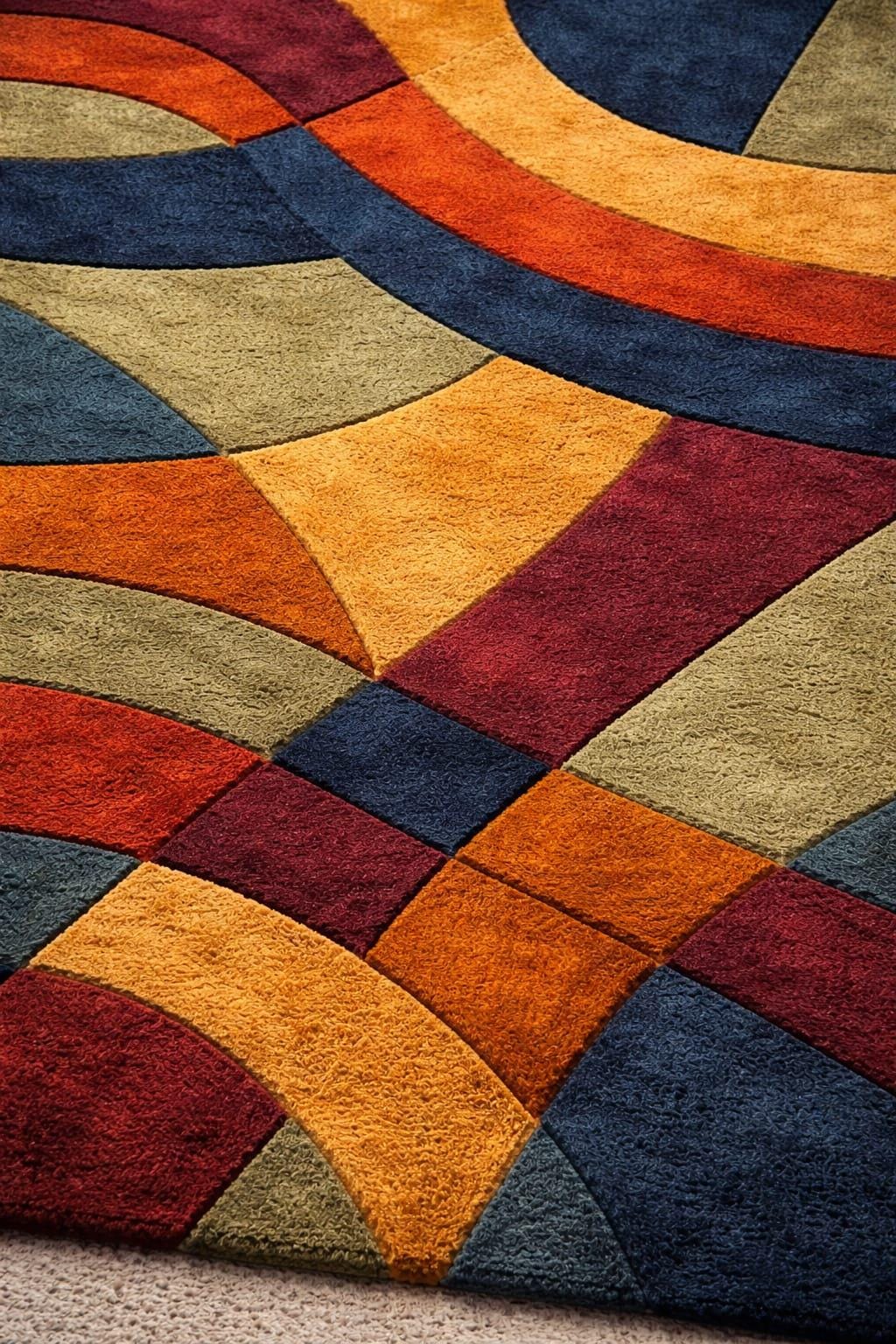 Bring warmth, color, and modern elegance to your space with this hand tufted abstract geometric area rug. Designed with bold curves and rich earthy tones, this rug is a perfect statement piece for contemporary and modern interiors.