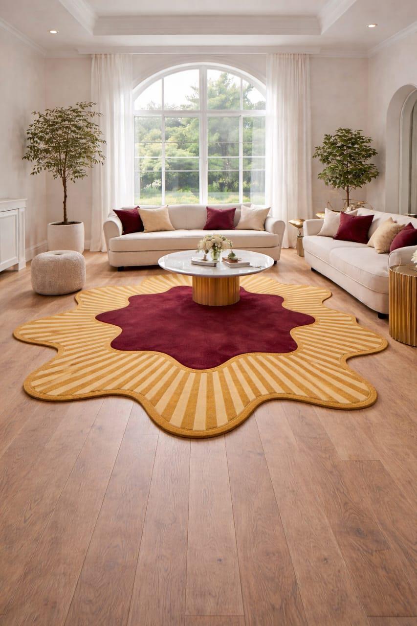The rich color palette blends beautifully with modern, minimalist, and contemporary interiors, adding depth without overpowering the room. Whether styled in a living room, bedroom, lounge, or creative studio, this designer rug enhances the ambiance and anchors your décor effortlessly.