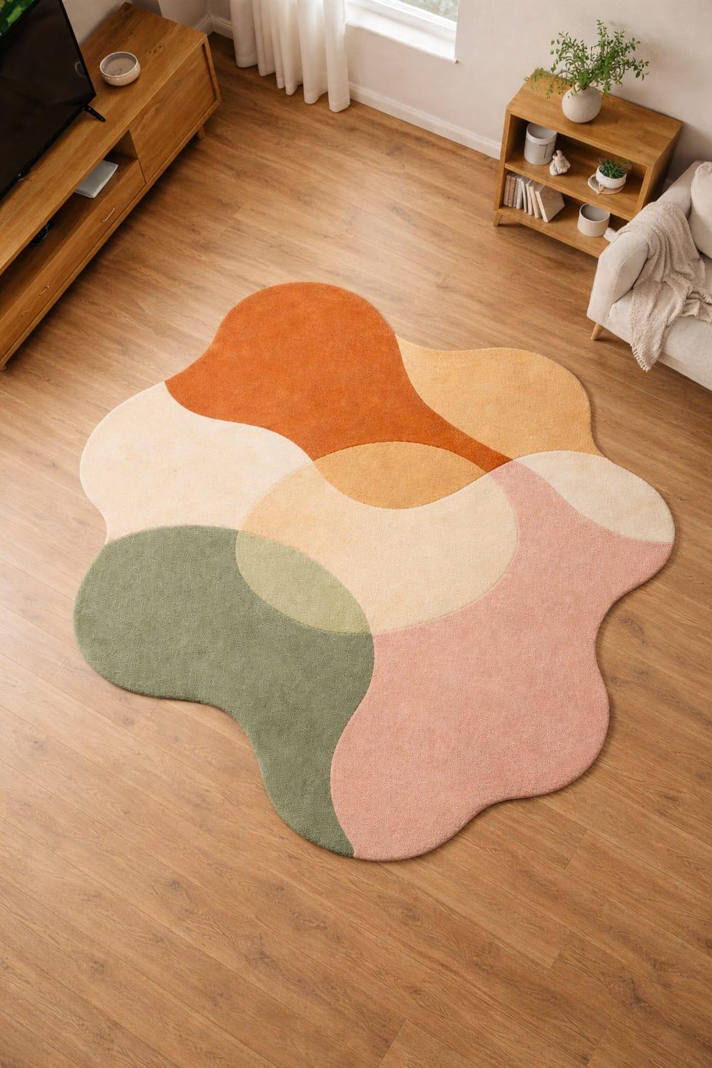 Modern Abstract Irregular Area Rug, Hand Tufted Wool Rug, Colorful Organic Shape Carpet, Contemporary Living Room Decor, Designer Floor Rug