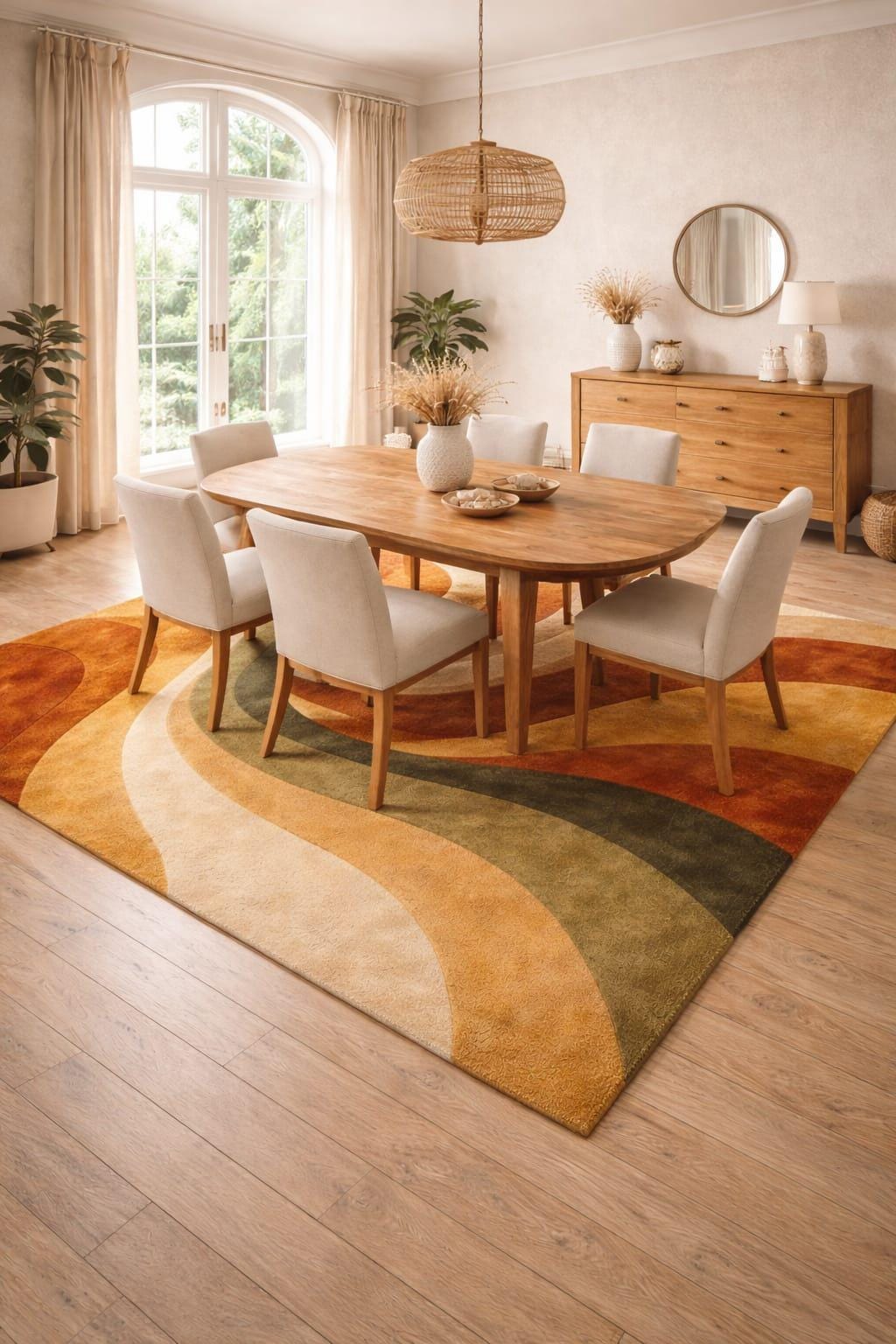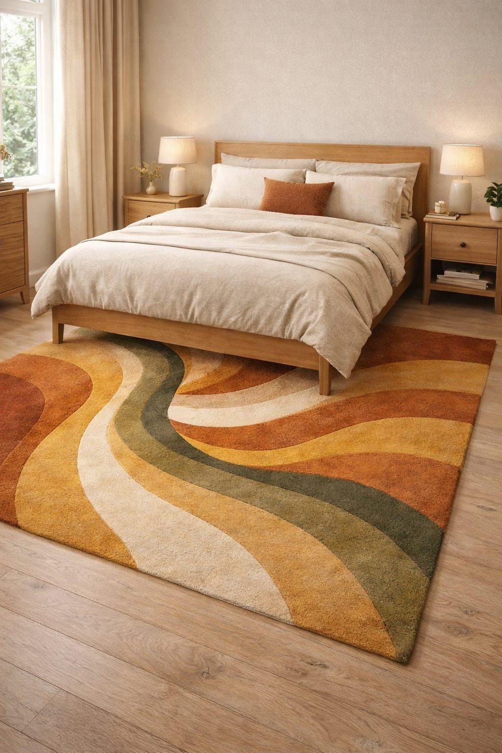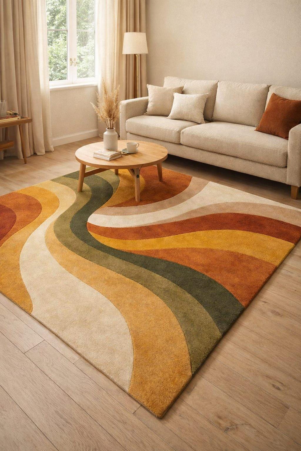 Handcrafted with premium quality materials, this rug is perfect for living rooms, bedrooms, or any space that needs a statement piece. The flowing abstract pattern complements modern, boho, and mid-century interiors effortlessly.